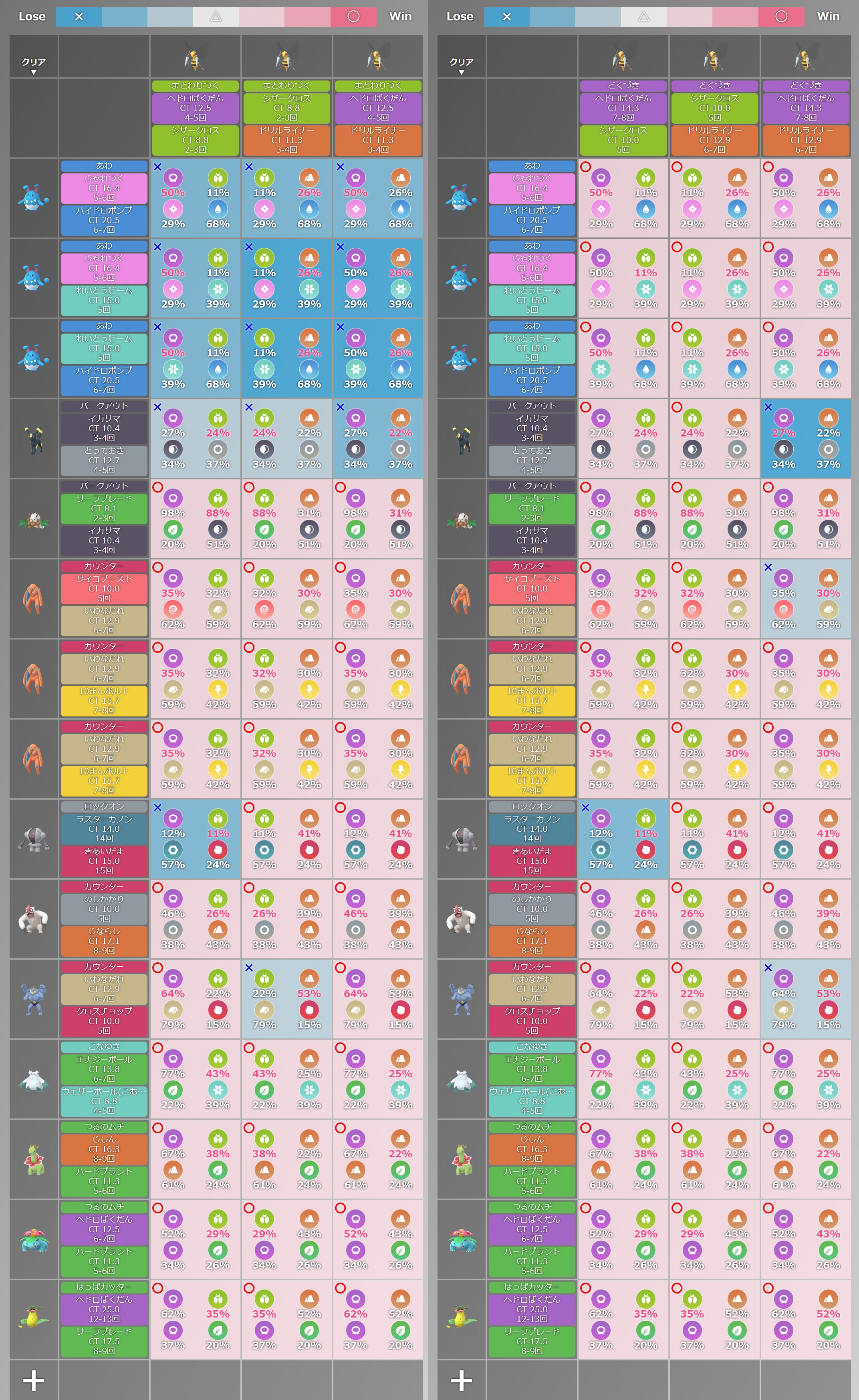 地面技の「ドリルライナー」で一矢報いることができるものの、基本技である虫技&毒技がどちらも効きづらいので、これも不利な対面といえます。